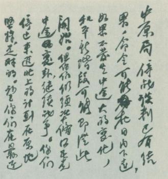 ↑劉少奇于1946年1月9日致電中共中原局手跡。  |