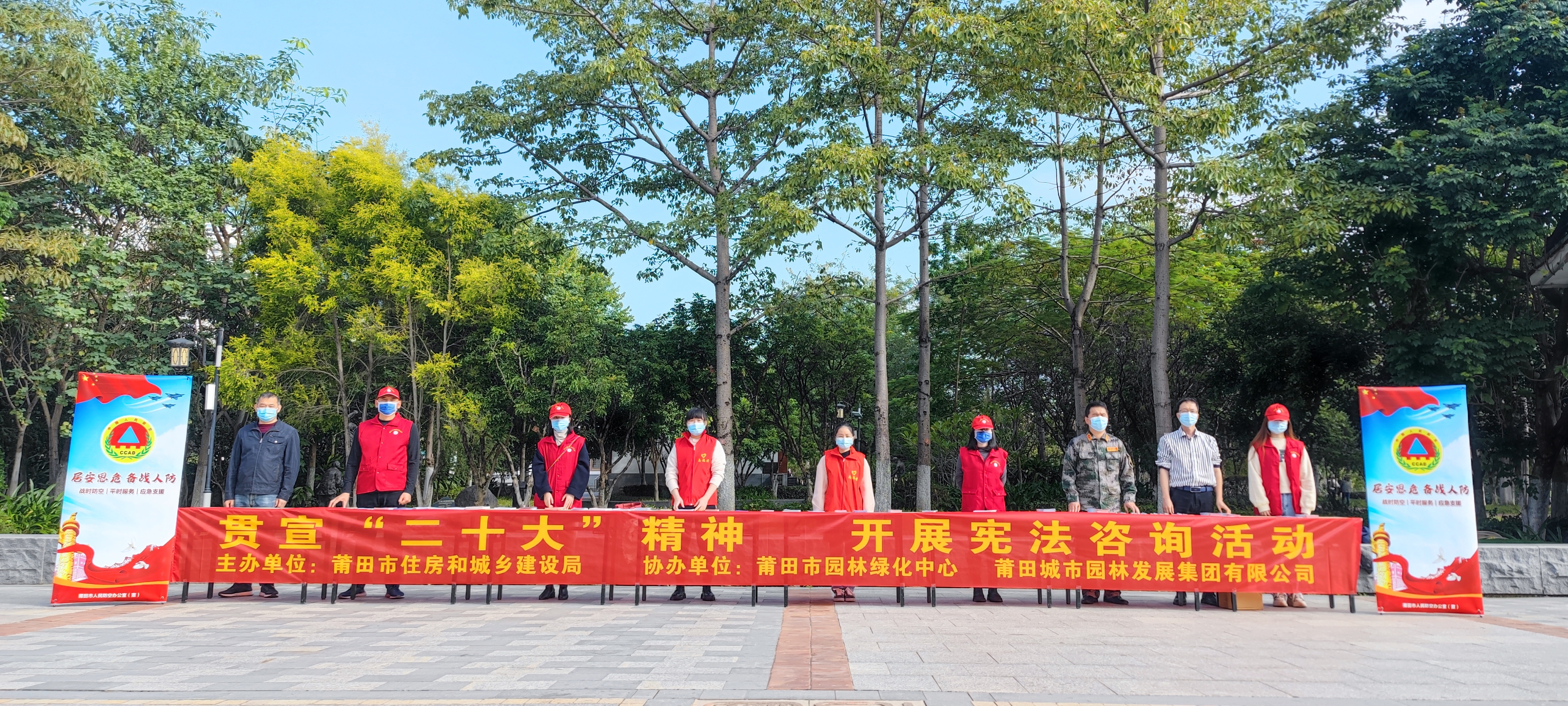 2022年12月8日,莆田城市園林發(fā)展集團(tuán)有限公司組織志愿者在綬溪公園廣場開展主題為“貫宣‘二十大’精神,開展憲法咨詢活動(dòng)”普法宣傳活動(dòng)。